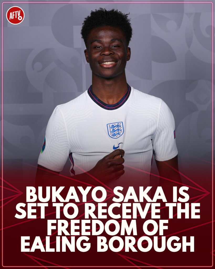 Bukayo Saka will become the youngest ever person to be granted the Freedom of his hometown of Ealing following his heroic exploits during England’s Euro 2020 campaign. ❤️🔑