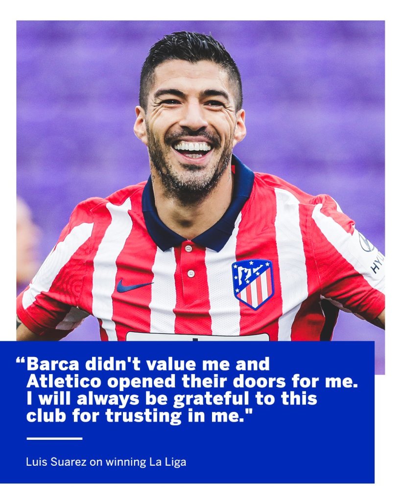 Uruguay striker Suarez started the season by being told by Barca boss Ronald Koeman he was not in his plans for this season but went on to score 21 league goals – including the decisive one.